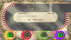 Dare-dare est un QCM compétitif présenté sous forme de course. Plus les élèves répondent vite, plus ils accélèrent sur la piste.