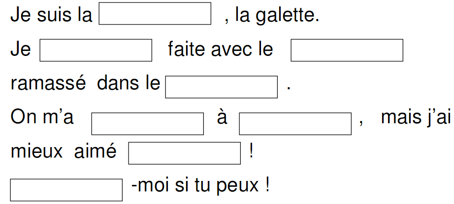 - Non, dit la galette, écoute plutôt ma petite chanson.
