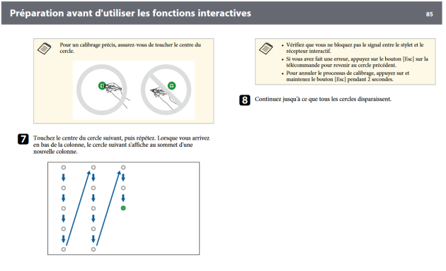 Dans le menu du vidéoprojecteur, aller dans Avancé->Easy Interactive Function -> Mode fonct. crayon -> 1 util/crayon