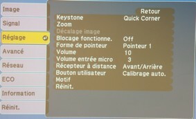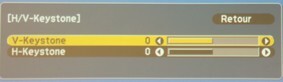 Dans le menu du vidéoprojecteur, aller dans Réglage->Keystone