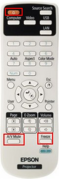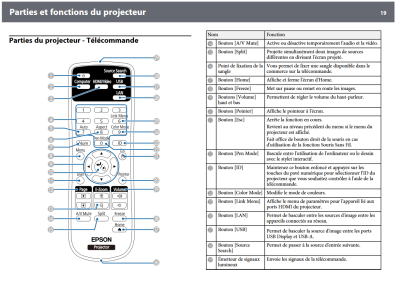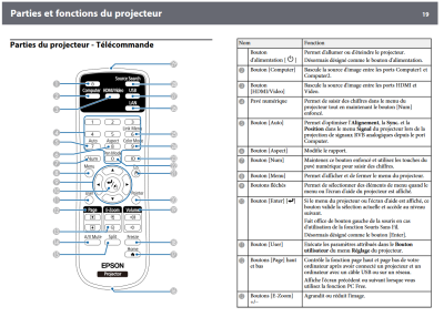 - Mute A/V : “noircit” l'écran (stoppe la transmission du signal vidéo) sans arrêter le vidéoprojecteur (permet d'utiliser l'ordinateur sans que l'assistance ne le voie ; remise en route immédiate de l'image au ré-appui, contrairement à l'arrêt du vidéoprojecteur...)